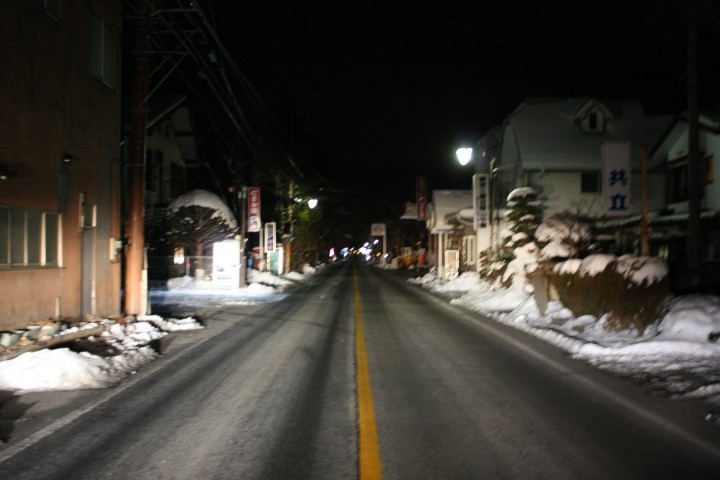 今シーズンは雪らしい雪は降っていなかったので、除雪作業は今回の雪が初めてです。国道はほぼ雪を雪をかいてありますが、日陰や夜、朝は凍結しています。国道以外の道(県道や村道)はまだ雪が残っていてわだち状になっている道路もありますので、スタッドレスやチェーンでも油断はできません、注意です!写真は、夜10時。国道は乾いていますが、アスファルトが凍っている所もあります。気温-7℃11/02/13