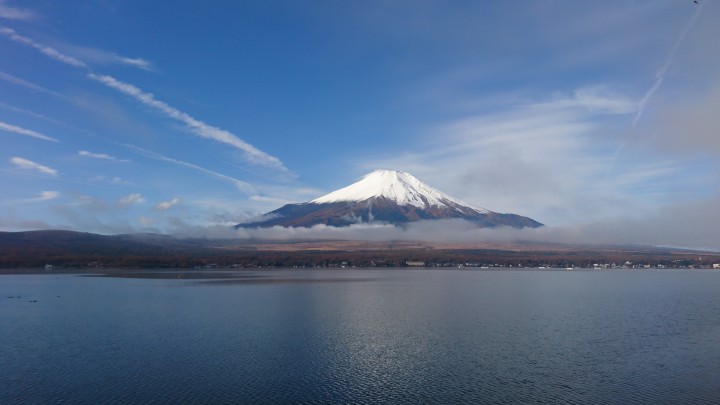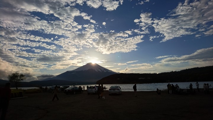 今日の山中湖は晴れ、とてもいい天気で、気持ちよくコート整備が出来ました。写真はいよいよ日没の瞬間です。太陽が富士山に沈む瞬間でした。時間は16時6分でした。あまりにも早い日没です。