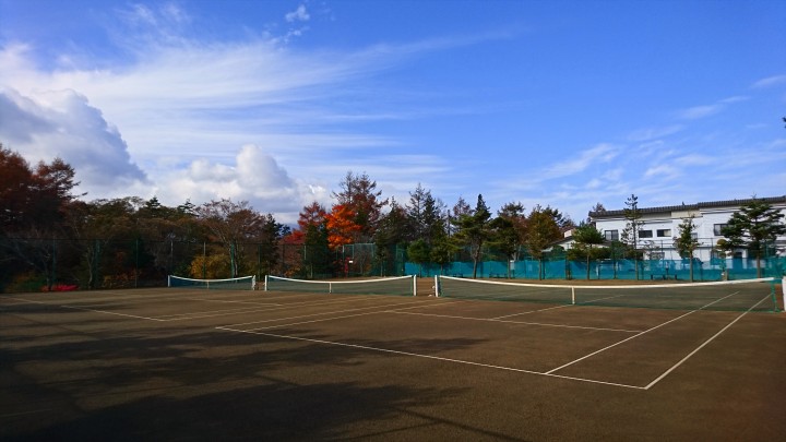 写真は当館テニスコート、9時の写真です。大分寒くなってきましたが、霜はまだ降りていませんので、あと1週間くらいは使用できそうです。富士山を見ながらテニスを楽しんではどうでしょうか。