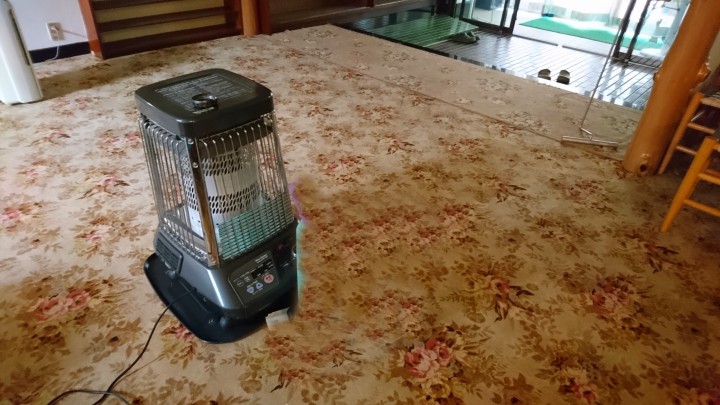 山中湖は寒くなってきました。1階ロビーにストーブ設置。