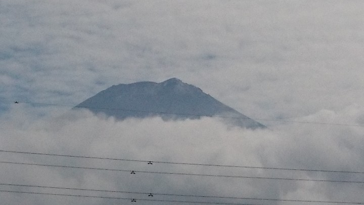本日、山梨県甲府地方気象台は富士山の初冠雪を発表しました。平年より25日早く、9月上旬までに観測されるのは2008年以来13シーズンぶりです。写真は、富士吉田から撮りました。山中湖からは残念ながら雲で全く見えませんでした。21/09/07