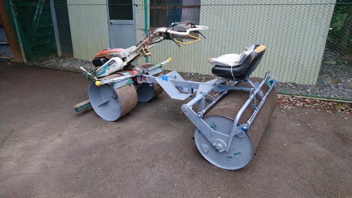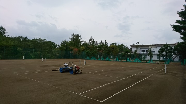 コロナ禍でもテニスコートのローラー転圧は、定期的に行っています。