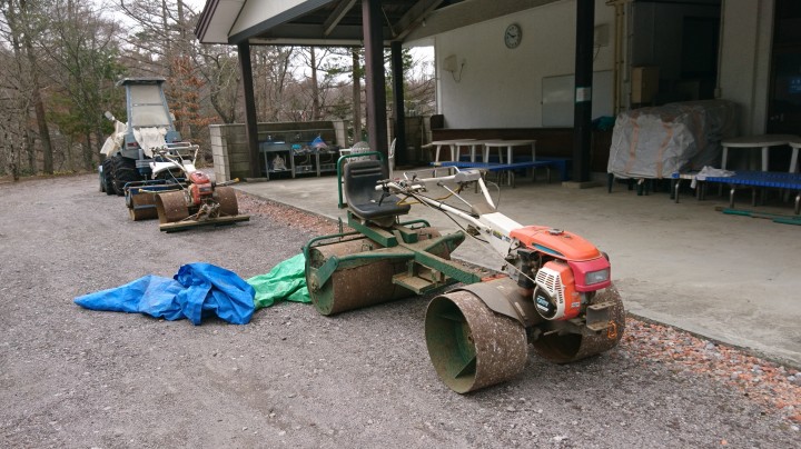 毎年行っているテニスコート造り。久しぶりに使うトラクターとローラーの整備をしました。ローラーの1台には水を注入します。2台とも問題なく動いてくれてよかったです。
