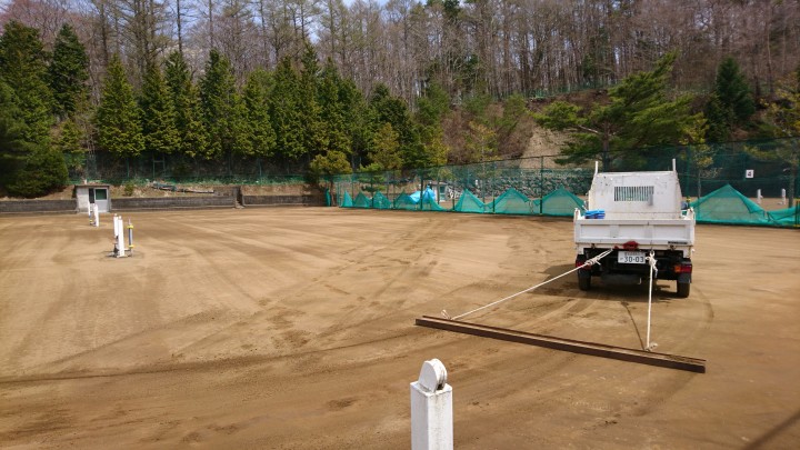 毎年行っているテニスコート造り。久しぶりに使うトラクターとローラーの整備をしました。ローラーの1台には水を注入します。2台とも問題なく動いてくれてよかったです。21/03/31