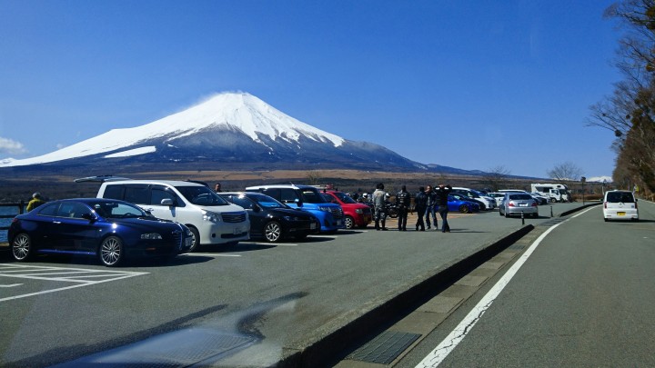今日の山中湖は晴れ、最高気温は4月中旬並みの15℃、いよいよ春がやってきた感じです。最低気温は3月中旬並みの―4℃、寒暖差には気を付けてください。写真は10時30分の山中湖親水公園駐車場、賑やかでした。21/03/15
