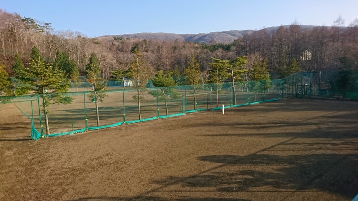 今日の山中湖は晴れ、いい天気の1日でした。最高気温は11℃、最低-3℃。写真はpm4時20分のテニスコートです。雪は全くありません。天気次第ですが、今月末にはトラクターで掘り起こす予定です。21/03/11