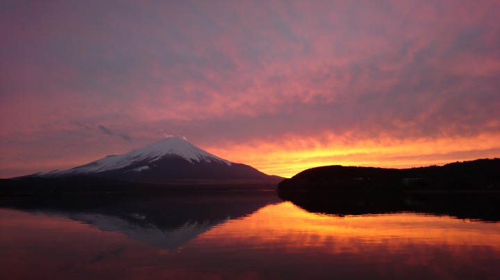 今日の山中湖は日中は曇っていましたが、夕方富士山を見ると空が真っ赤でした。慌てて山中湖へ行き、午後6時、素晴らしい夕焼けが見れました。まさに絶景でしたが写真を見たら逆さ富士ですが、なんだかよく分からない写真になってしまいました。