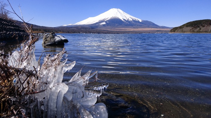 今日もいい天気でしたので、山中湖から富士山を撮ってきました。場所はきららの浜です。波が打ち付けられた樹木?が凍ってました。神秘的です。日中は日差しがあってポカポカですが、日陰は寒い1日でした。今朝の最低-7℃最高7℃