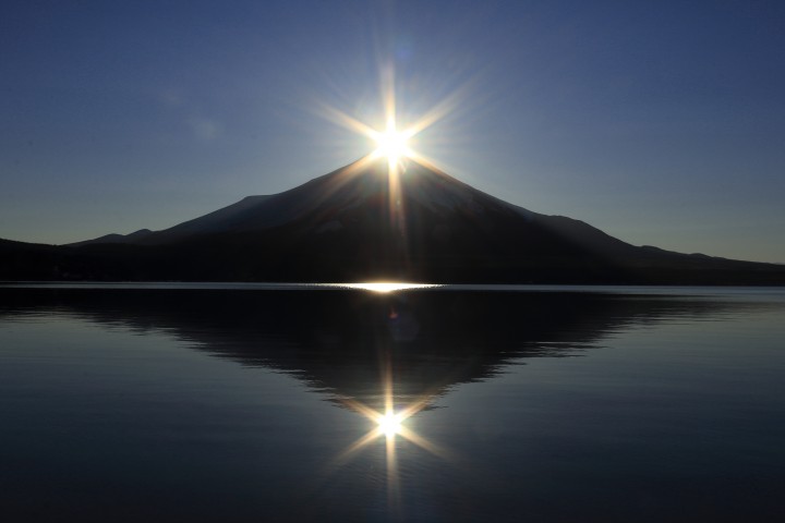 山中湖からダイヤモンド富士を撮りました。午後4時40分、山中湖、平野からです。運よく湖面に映ったダイヤモンド富士、ダブルダイヤモンド富士となりました。このダイヤモンド富士となる時間帯の後も、富士山のシルエットがより際立つのできれいな写真が撮れます。次回撮ってみたいと思います。