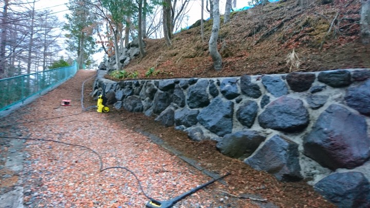 石垣をきれいに水洗いしました。