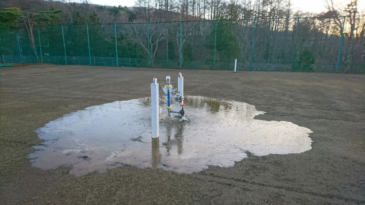 テニスコートのスプリンクラーの水抜きしました。