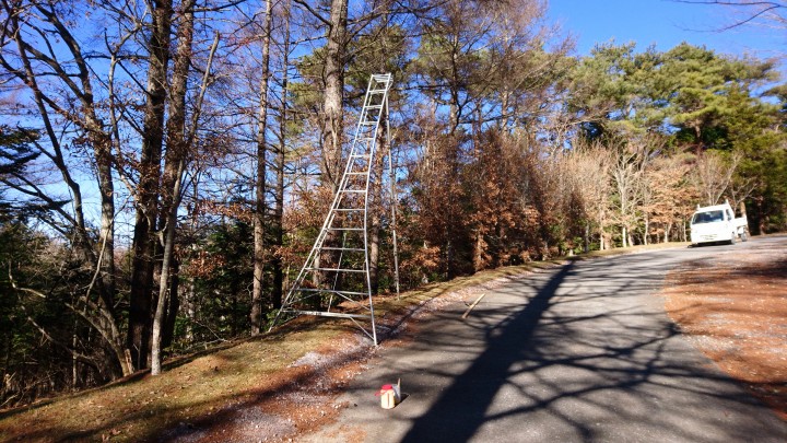 今日は入り口カーブの剪定を行いました。日中はよく晴れましたが、今朝の最低気温が-11.3℃と寒すぎたので、0℃になった10時からの作業でした。最高気温は4℃、日差しが無ければかなりの寒さです。山中湖にお越しの際は防寒対策を徹底してくださいね。