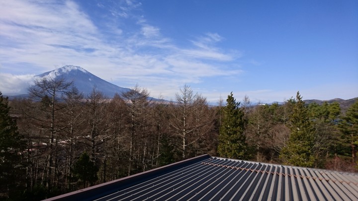 今日は屋根に上っての雨樋掃除を行いました。写真は屋根上から撮った富士山です。昔は山中湖も見えましたが、木が伸びて見えなくなりました。少し残念でしたが、それでも絶景でした。今日の山中湖は晴れ、最低気温-3℃、最高10℃