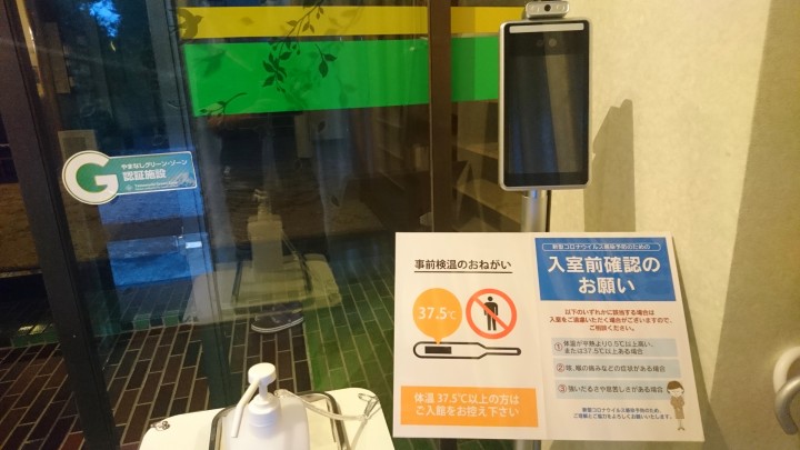 ご来館時にお客さまの健康状態に関して確認をさせていただいております。非接触タイプの体温計を用い、お客さまの体温を確認させていただきますので、ご協力をお願いいたします。 検温方法はお客様ご自身で、非接触体温検知器の画面に顔を合わせれば自動で行われます。楽しみながら検温してみてください。20/09/16