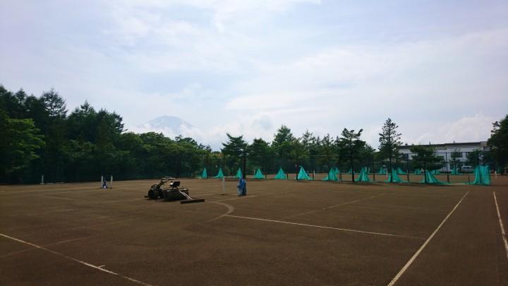 今年は新型コロナウイルスの影響により、テニスコートの使用はまだありませんが、定期的にローラー転圧だけは掛けています。ここ数日雨が降る日が多くなっていたため、日差しぶりのローラー作業でした。早く使用する日が待ち遠しいです。今日の山中湖は晴れ、最高26℃最低15℃20/06/27