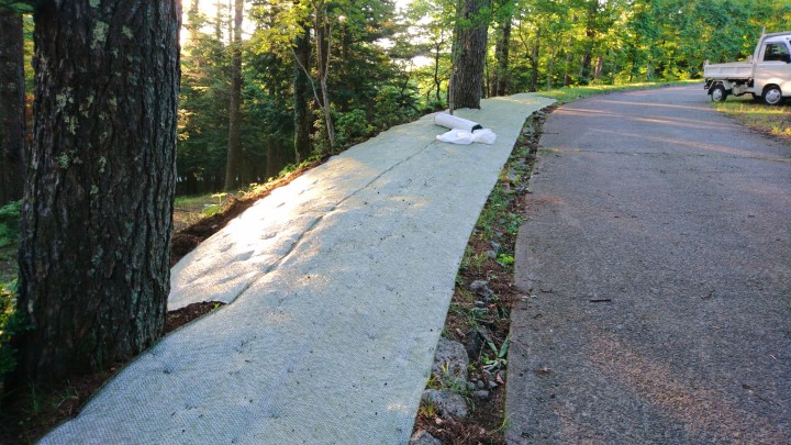 今日は当館入り口に芝が生えてくるシートを設置しました。去年も一部設置しましたが、今年でほぼ設置完了です。梅雨に入る前に作業したかったのですが、何とか根付いてもらいたいです。今日の山中湖は晴れ、最高25℃最低12℃20/06/16