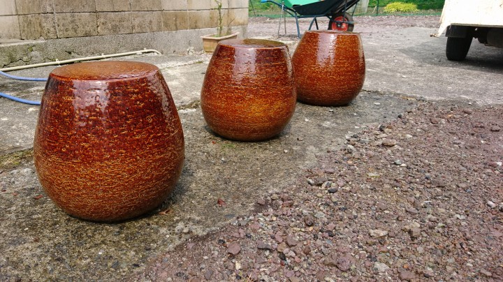 今日の山中湖は晴れ、最高気温23℃最低12℃、写真は大きな陶器製のイスです。当館には屋外用のイスとして白色と青色の物が3つずつありましたが、今年はさらに茶色のものが3つ増えました。置く場所はまだ未定ですが、お越しの際はぜひ使用してみてくださいね。20/06/20