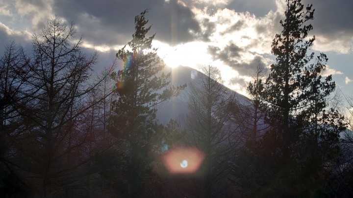 今日は2月23日、ゴロで読むと「ふじさん」です。山梨県と静岡県では富士山の日として、イベントが模様されています。近くのきららでもイベントをやっています。写真は当館の多目的ホールから撮っただダイヤモンド富士です。雲が掛かってしまいいまいちでしたが、ちょうど山頂に太陽が落ちました。