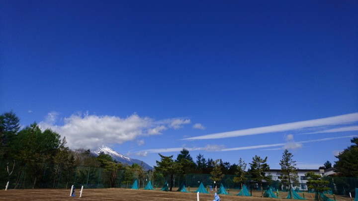 ここ数日、日差しが強い山中湖です。今日もよく晴れて最高気温24.9℃、ほぼ夏日となりました。30℃を超えている地域もあるようですので、熱中症にならないように水分をこまめにとりましょう。写真は当館所有の?8〜10コートです。青空がきれいでした。