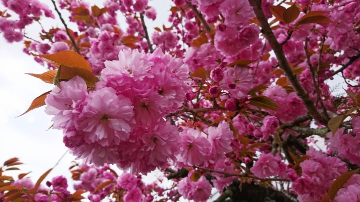 庭の八重桜がふさふさです。