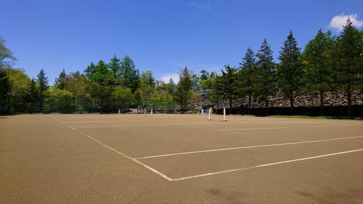 ここ数日、日差しが強い山中湖です。今日もよく晴れて最高気温24.9℃、ほぼ夏日となりました。30℃を超えている地域もあるようですので、熱中症にならないように水分をこまめにとりましょう。写真は当館所有の?8〜10コートです。青空がきれいでした。20/05/13