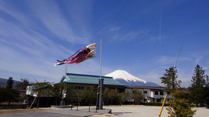 写真は平野バス停横の公園から撮った富士山です。朝9時30分、青空と富士山をバックに、大きな鯉のぼりが羽ばたいでいました。今日は風が強いので、動きが大きく元気がいい鯉のぼりでした。この勢いで、コロナも吹き飛ばしてほしいです。今日の山中湖は晴れ、最高気温は6月上旬並みの20℃、最低−1℃