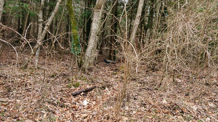 今日の山中湖は曇り時々晴れ、最高気温14℃最低5℃。朝は冷え込むことはありませんでしたが、日中日差しがなく肌寒く感じました。写真は裏山に入った時のものですが、中央に綺麗な色をしたキジがいるのが分かりますか。逃げ足が速く一瞬でしたが、何とか写真に収めました。とても元気でした。