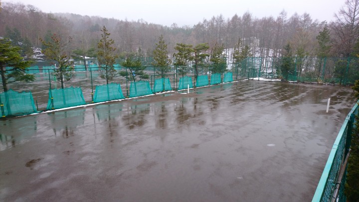 今日は朝から小雨で1日中降っていました。先日テニスコートをトラクターで掘り起こしたばかりなので、とてもいい湿り気となっています。今年は春から締め固まったテニスコートが出来そうです。今日の最高気温8℃最低1℃