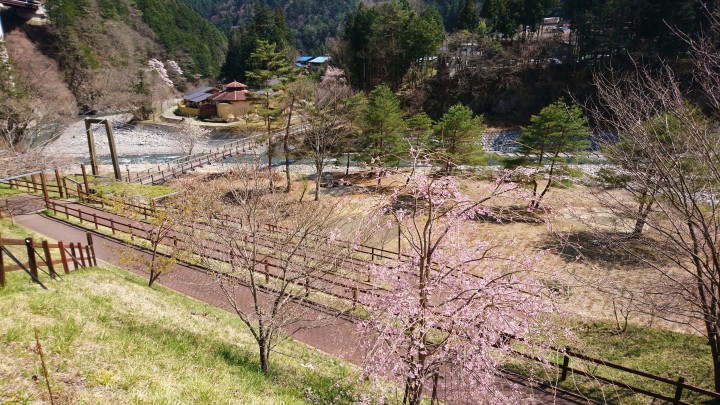 今日は山梨県の丹波山村まで行ってきました。当館からは約75km、2時間くらい離れていますが、桜は間もなく満開を迎えそうでした。写真は道の駅「たばやま」の裏。ご覧の通り素晴らしい眺めで、公園、川、つり橋、温泉があって、おすすめスポットです。残念ながら、新型コロナ自粛で「のめこい湯」は休館中でしたが、満喫した1日でした。今日の山中湖は晴れ、最高17℃最低−1℃20/04/04