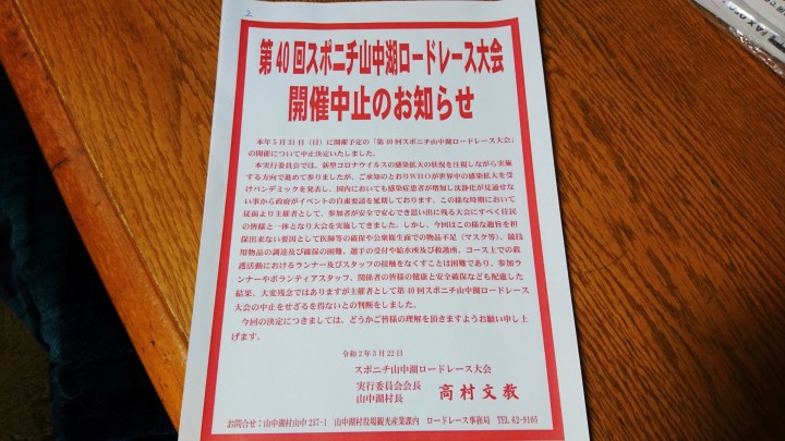 今年の「スポニチ山中湖ロードレース」が中止になりました。