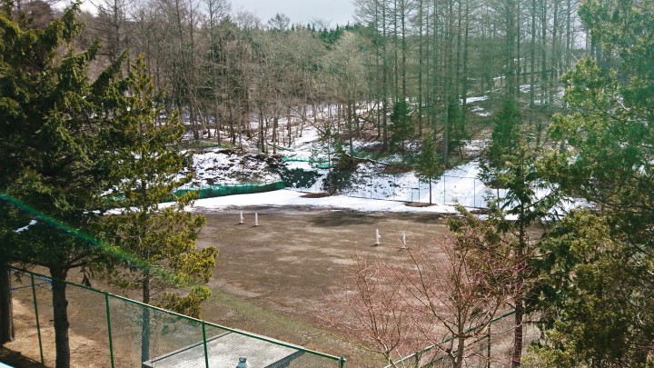 今朝の山中湖は最低気温−9℃まで冷え込みました。日中は6℃までしか気温は上がりませんでしたが、日差しがあって写真のようにテニスコートの雪はかなり解けてきました。3月も半ばを過ぎたので、そろそろ春がやってきてていい頃ですね。