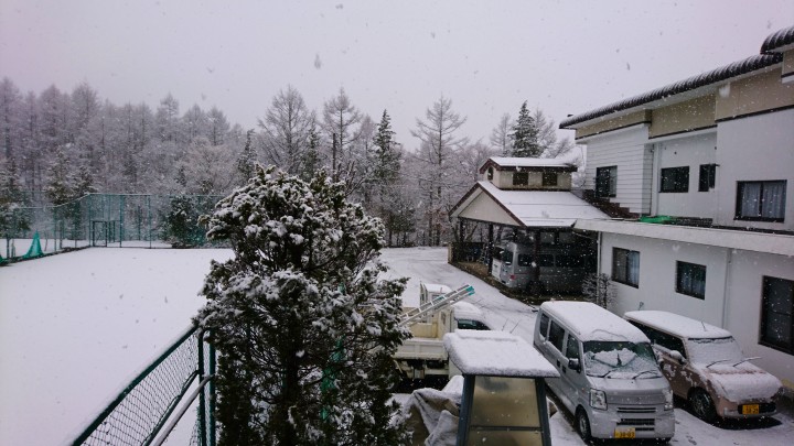 いよいよ今日からテニスコートの準備にかかりました。来月からテニスコートをオープンできるように、まずは葉っぱや枝などの片付け掃除です。周りが山なので、この掃除だけでも数日かかります。完成まではたくさんの作業工程がありますが、手を抜かずに丁寧に仕上げていきたいと思います。今日の山中湖は晴れ時々曇り、最高14℃最低−3℃