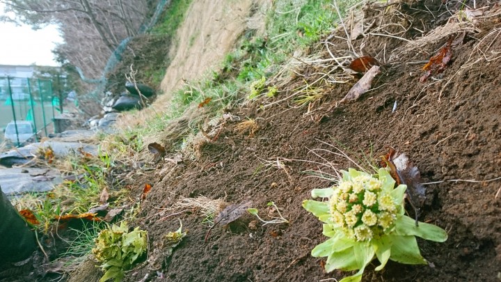 今日、テニスコートでふきのとうを発見しました。春一番に芽を出して、私たちに春を告げてくれる「ふきの花」ふきのとう。小さくてかわいかったです。間もなく春がやってきます。今日の最高気温は17℃、陽気は春を過ぎて5月そのものでした。最低2℃。