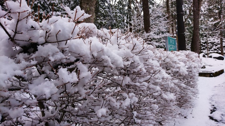 今日の山中湖は晴れ、昨日降った雪で辺り真白、冬に戻った山中湖です。今朝の最低気温は−7℃、最高4℃。写真は当館入り口、降り積もった雪が綿雪みたいにふわふわで気持ちよさそうでした。20/03/15
