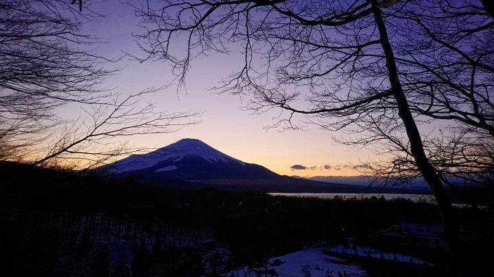 今日は3月上旬並みの陽気となった山中湖です。今朝の最低は−6℃、最高7℃。夕暮れ時に当館展望台まで行き、写真を撮りました。午後5時25分、空が紫がかって富士山のシルエットがきれいでした。寒くなければ空の色が変わる経過をずっと見ていたい気分でしたが、軽装でしたので諦めました。また次回楽しみたいと思います。20/02/11