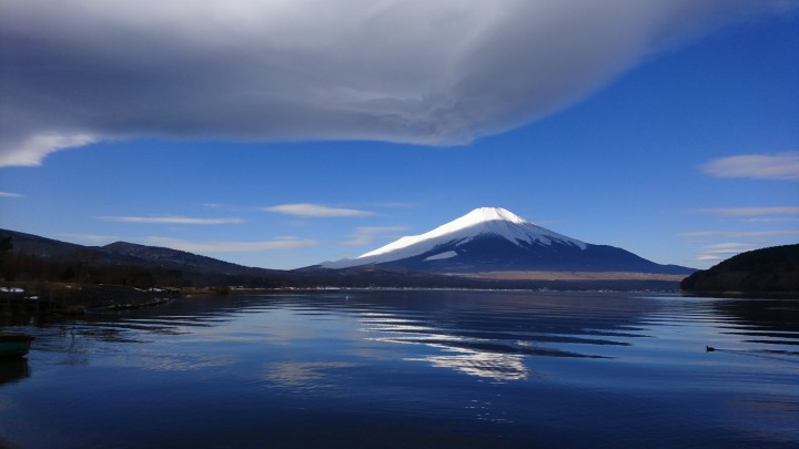 写真は朝9時、当館から富士山を見ていたら、富士山の雪に筋が入って見えたので山中湖まで行って写真を撮りました。筋の正体は富士山上空に大きな大きな雲があってその陰でした。小さなカモが入ったなかなかの写真になりました。今日の山中湖は晴れ、最高気温10℃でポカポカ陽気でした。最低−6℃