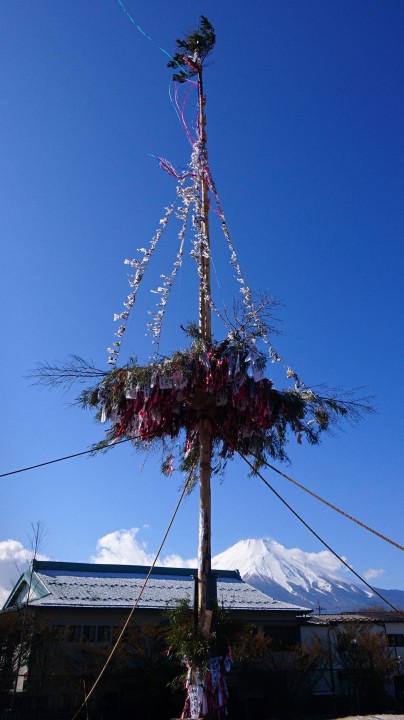 現在、山中湖平野交差点隣の公園ひらりには高さ25mの大きな御神木が建てられています。この御神木は19日早朝に倒されますので、建てられている期間はあと3日だけですのでお早めに訪れてみてください。真後ろには富士山が見え、とても写真映えすると思います。今日の山中湖は曇り時々晴れ、最低−6℃最高3℃20/01/16