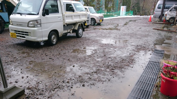雨で雪がかなり解けました。