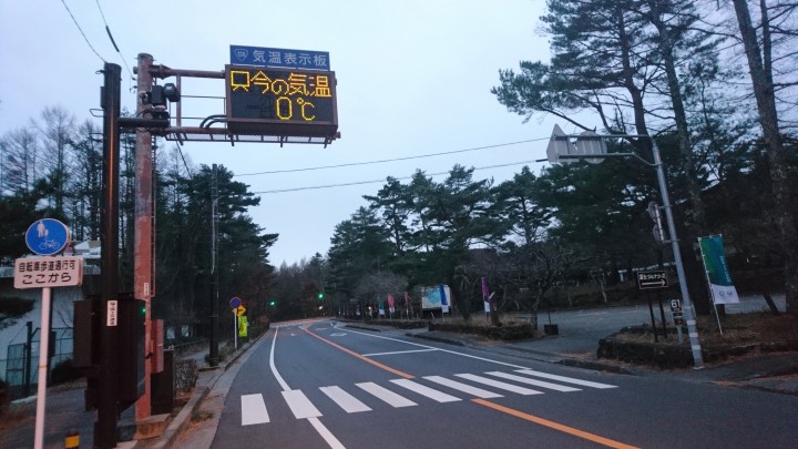 今日の山中湖は日差しがなく、日中は本当に寒く感じました。最高気温は1月中旬並みの3.8℃、日中は頭がキーンとする冷たさでした。写真は山中湖役場前の電光掲示板ですが、午後1時、気温0℃と表示されていました。今朝の最低気温−2℃