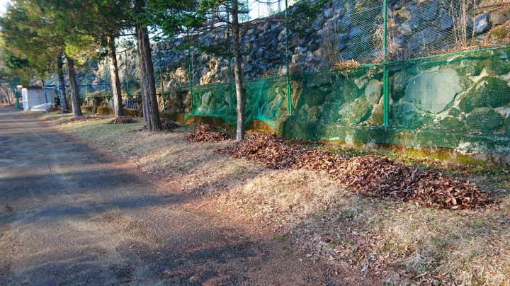 当館のテニスコートは自然の中にあるため、落ち葉がすごいです。この落ち葉片付けが今日、やっと終わりました。いくら葉っぱを取っても翌日には落ち葉がありますが、きりがないので、今日でこの作業は終わりにしました。後は春先にでも掃除したいと思います。今日の山中湖は晴れ時々曇り、最低−1℃、最高6℃