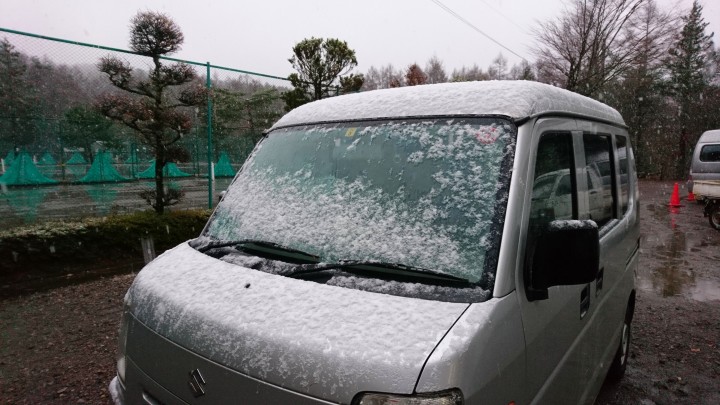 朝から冷たい雨の山中湖、午後2時になると寒さから雨が雪に変わりました。2019年、初雪です。写真は午後4時、雪で車が白くなりました。雪は次第に弱まり夜9時には止みました。予報では朝方冷え込むので、現在濡れている道路は凍結注意です。ツルツルの可能性があります。今日の最高気温は0時に9℃、気温は時間が経つにつれて気温が下がっています。夜9時にはついに氷点下になりました。