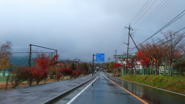 今日の山中湖は朝方は小雨でしたがその後は晴れ、夜の9時から大雨となりました。写真は朝7時の国道413号線、まだ雨が降っていましたが、この後よく晴れました。最低気温は2℃、最高気温は19℃、風が強く木々が大きく揺れていました。紅葉が無くならなければいいのですが。