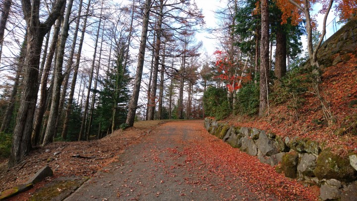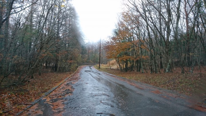 今日の山中湖は晴れ時々曇り、日中の最高気温が20.1℃、強い日差しはありませんでしたが季節外れの生暖かい1日でした。今朝の最低は7℃。昨日から続いたこの暑さも今日までで、明日は一気に寒くなり、今日の最低気温が明日の最高気温らしいです。寒暖差が激しいので、風邪には気を付けましょう。写真は当館庭の坂道ですが、紅葉も終わりのようです。