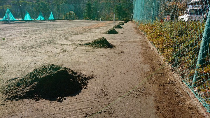 テニスコートの余剰な砂を取り除きました。