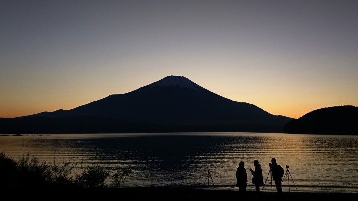 今日の山中湖は晴れ、日中はよく晴れて最高気温は16℃まで上がり、寒さは感じられず日差しが暖かかったです。写真は16時55分の山中湖から見た富士山です。この時点でも幻想的でしたが、これからの数十分間の変化が素晴らしく黄金色に変わった後、次第に紫色になっていきます。おすすめです。最低2℃